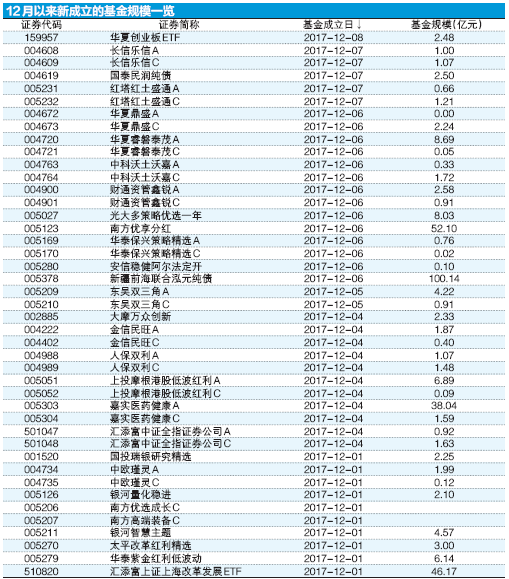 12月份以来新成立基金规模破300亿元