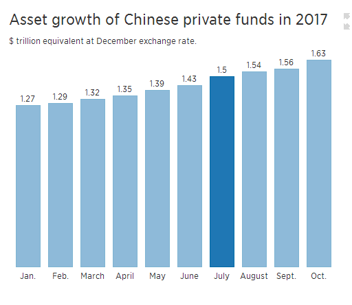 北京时间6日晚,据中国资产管理协会(Asset Management Association of China)最近发布报告称,随着中国有更多财富流向理财机构,中国私募基金行业管理的财产正在迅猛增长。