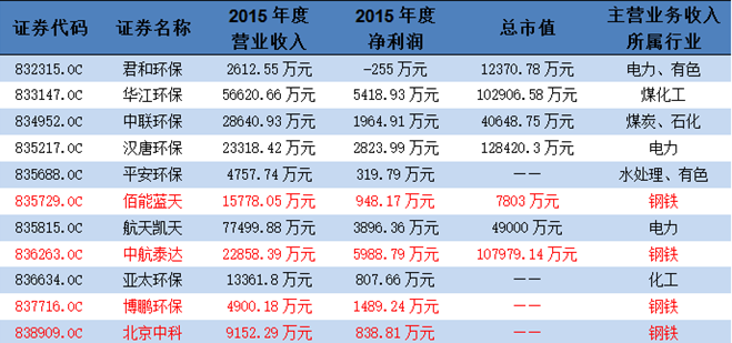 新三板11家钢铁污染治理企业名单