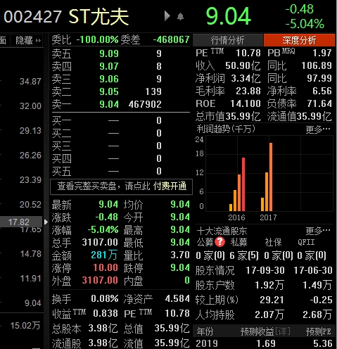 这位挑战者就是ST尤夫。根据4月25日的盘面数据来看,仍然有46万手的资金挂在跌停板上,这也意味着ST尤夫的跌停之路或许还将继续。