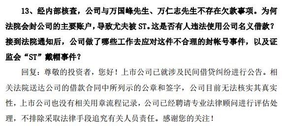 ST尤夫一场在投资者说明会中也明确回复了有关ST的事项。