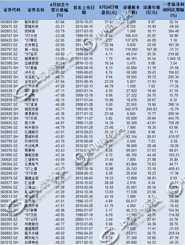 从业绩上看,不少个股业绩不及预期也成为股价大跌的导火索之一。上述50只个股中,21只个股今年一季度净利润同比下滑。其中雪峰科技、*ST上普、三维丝、航天长峰等个股一季度业绩则为净亏损。