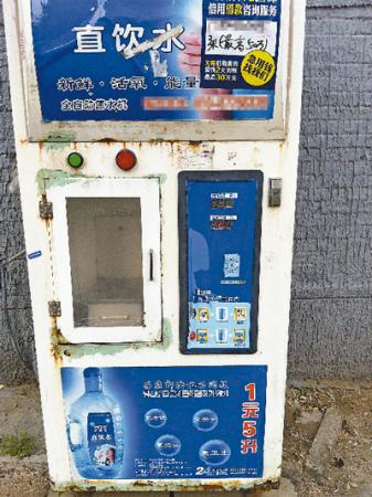 在调查中,记者发现这样的情况比较普遍。在走访的7个小区里,20台售水机大多摆放在露天场地,其中3台已停止使用。在正常运行的机器上,未看到贴有卫生许可标识,机身均不同程度存在破损、老化等现象。由于没有专人看管,接水口任何人都能触摸,卫生状况堪忧。