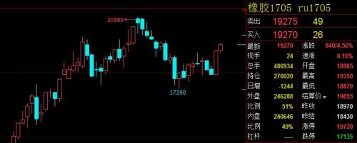 今日(1月10日)大宗商品再度掀起涨停潮,橡胶也不甘落后,继昨日拉起6.24%的一根大阳线后,今日以4.56%的涨幅领涨能化板块。截止收盘,橡胶1705合约报19270元/吨,成交48万余手,持仓27万余手。近期炒得沸沸扬扬的泰国极端天气对沪胶会产生多大的影响?在2016年几近单边上涨的沪胶2017年会有怎样的表现?对此,七禾网联系了信达期货的分析师施潇涵为广大投资者解读橡胶走势。