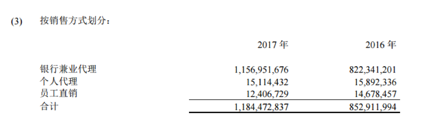 2017年年报显示,汇丰人寿保险业务收入中,银保渠道收入为11.57亿元,占比高达97.7%,个人代理和员工直销仅为0.15亿元和0.12亿元。