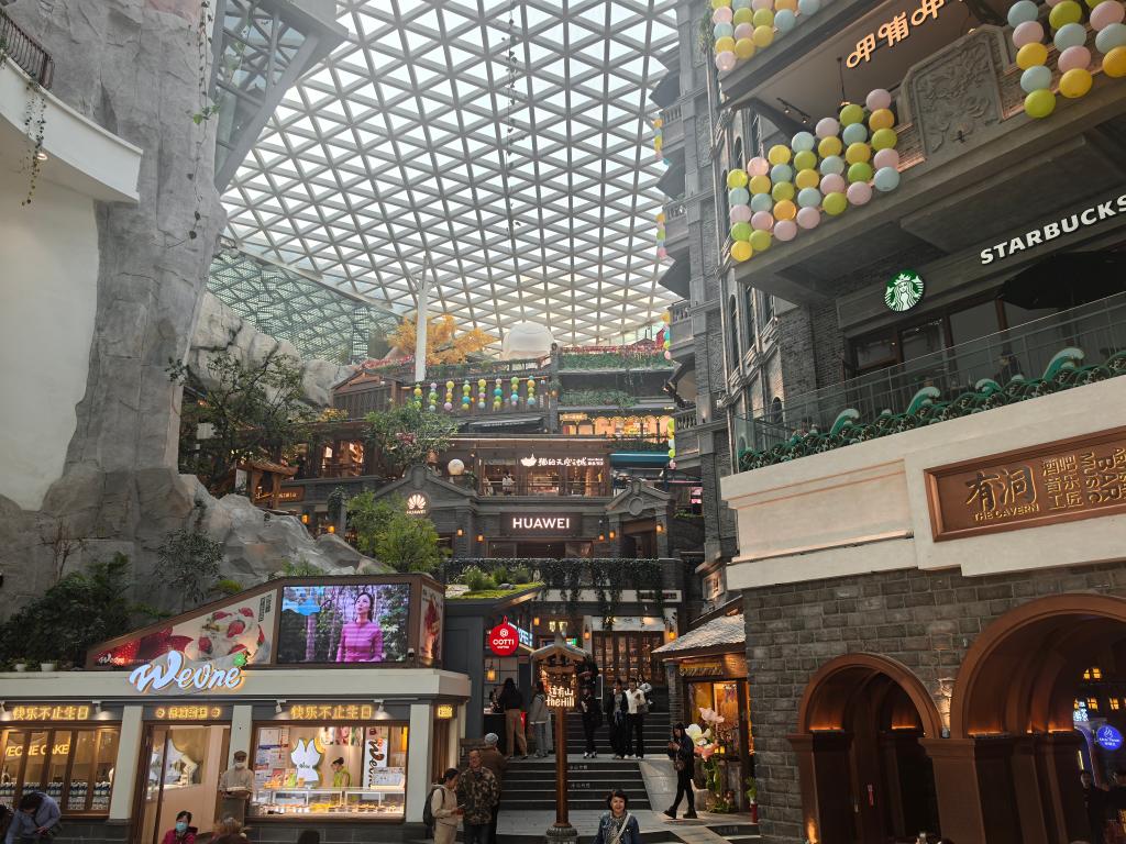 在红旗街道的“这有山”商场,来到这里的顾客纷纷举起手机拍照打卡。因“山”得名,这里将“青山”搬进繁华商区,一进门就可远观整座山形建筑。拾级而上,各具特色的200多家商户沿山路设置,山水、亭台、绿植点缀其中,意趣盎然。