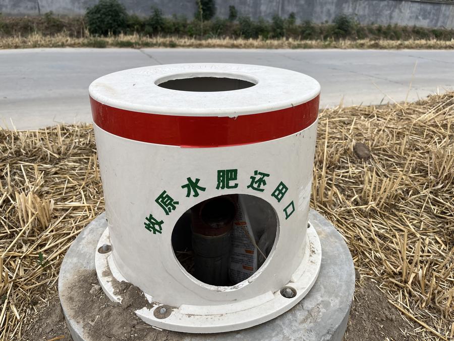 图为在河南汝州市小屯镇的刚刚进行完麦收的农田旁边,连通附近牧原规模化养猪场的水肥还田出水口。新华社记者 马意翀 摄