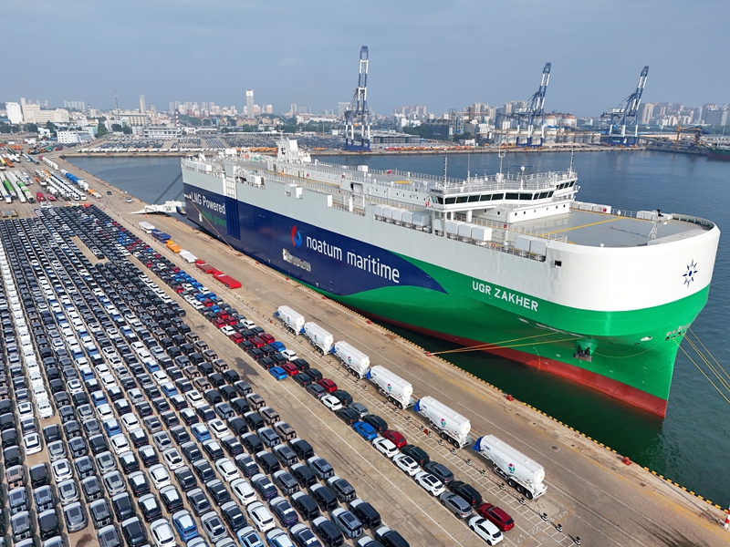 汽车运输船在山东港口烟台港装运出口汽车 新华社图文