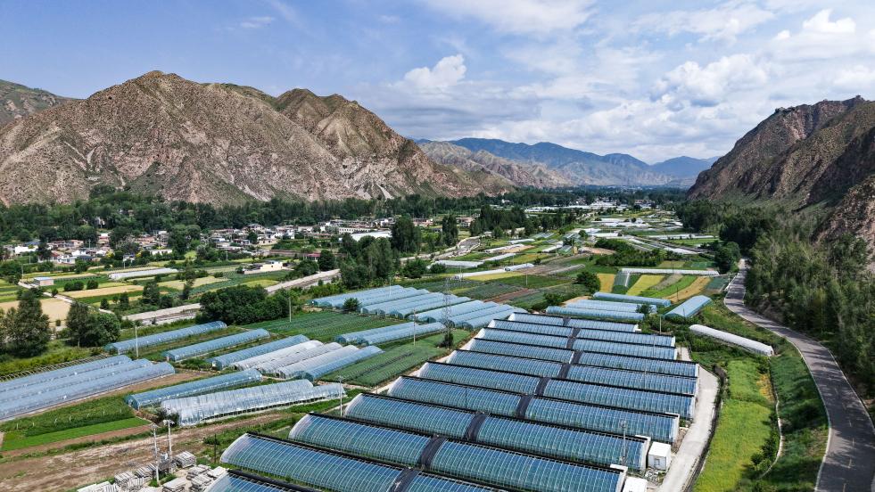 7月23日,青海省海东市乐都区的蔬菜大棚航拍图。新华社记者 齐芷玥 摄