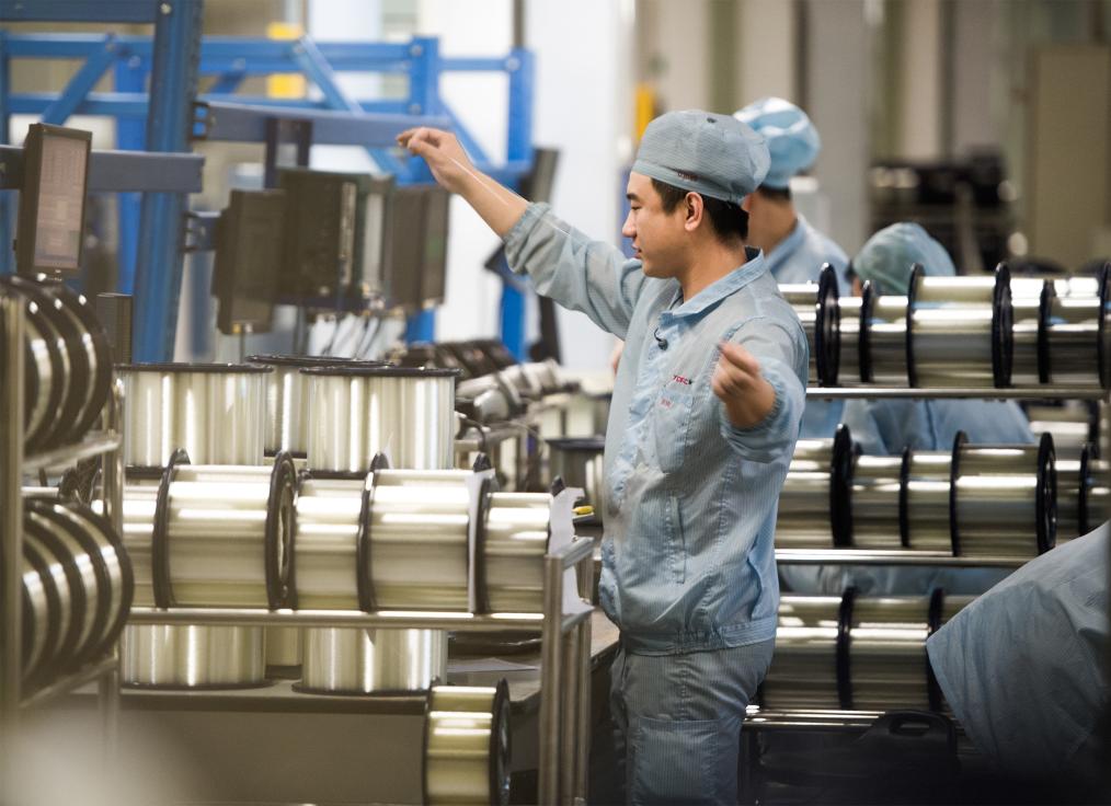 在宁波博威合金精密细丝有限公司,“一根切割丝”被做到旁人难以达到的精细程度。切割丝是机器人谐波齿轮、航空发动机叶片等精密工件加工的必备工具。从0.33mm到0.015mm,十多年来,博威精密细丝持续突破卡点、盲点,一次次突破直径极限,推动制造精度迈入微米级。
