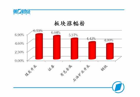 截至沪深股市全天收盘,上证综指收报3230.98点,上涨43.41 点,涨幅1.36%,成交额2,698亿元;深证成指收报10295.57点,上涨191.81点,涨幅1.90%,成交额2,548亿元;创业板指收报1684.77点,上涨17.28点,涨幅1.04%,成交额468 亿元。盘面上,煤炭开采、有色金属、证券等板块再度涨幅靠前;两市无一板块下跌,全线上涨。