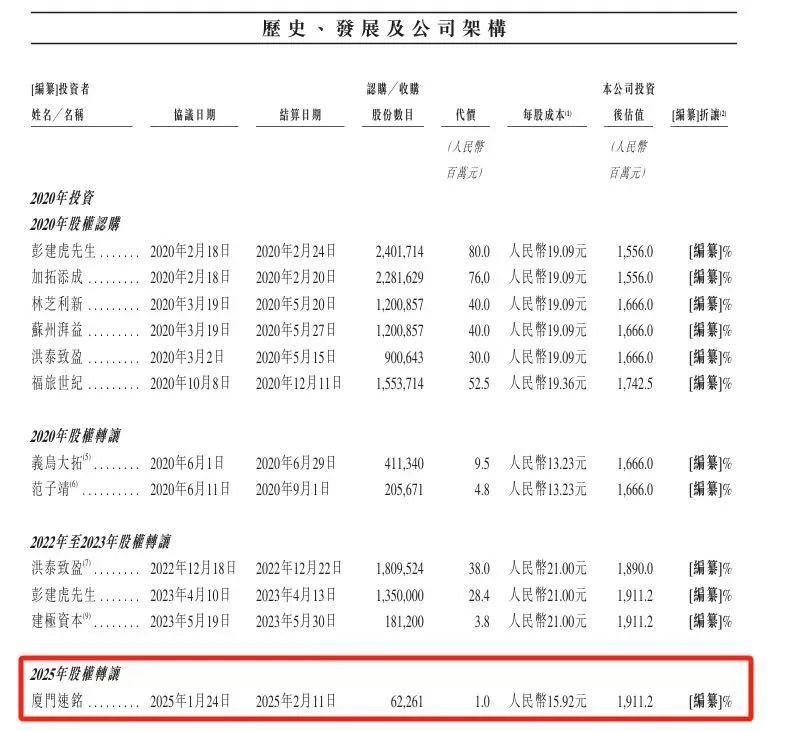 上市申请材料显示,科拓股份此前经历了多轮股权转让。在2025年1月的股权转让中,公司的投后估值约为19.11亿元,对应每股成本15.92元。