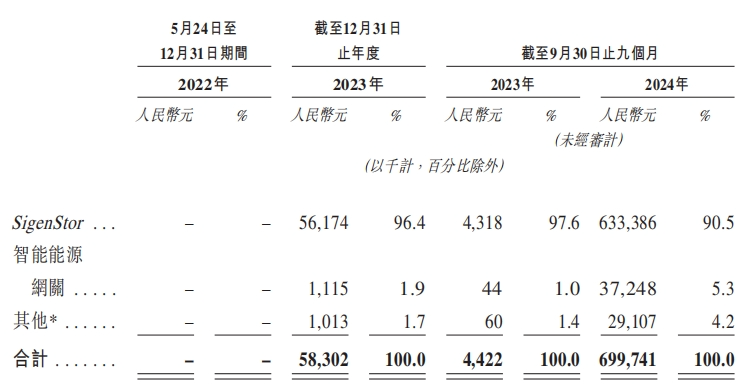 招股书显示,2023年、2024年前三季度,SigenStor的销售额贡献了公司总收入的逾90%。
