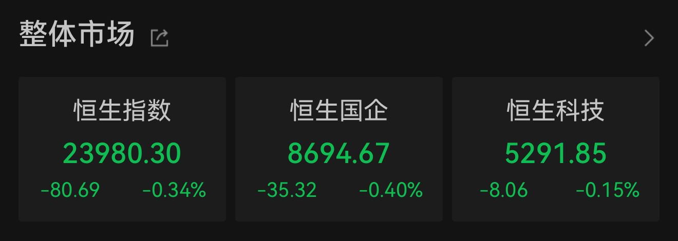 港股三大指数下探,家电板块涨幅居前