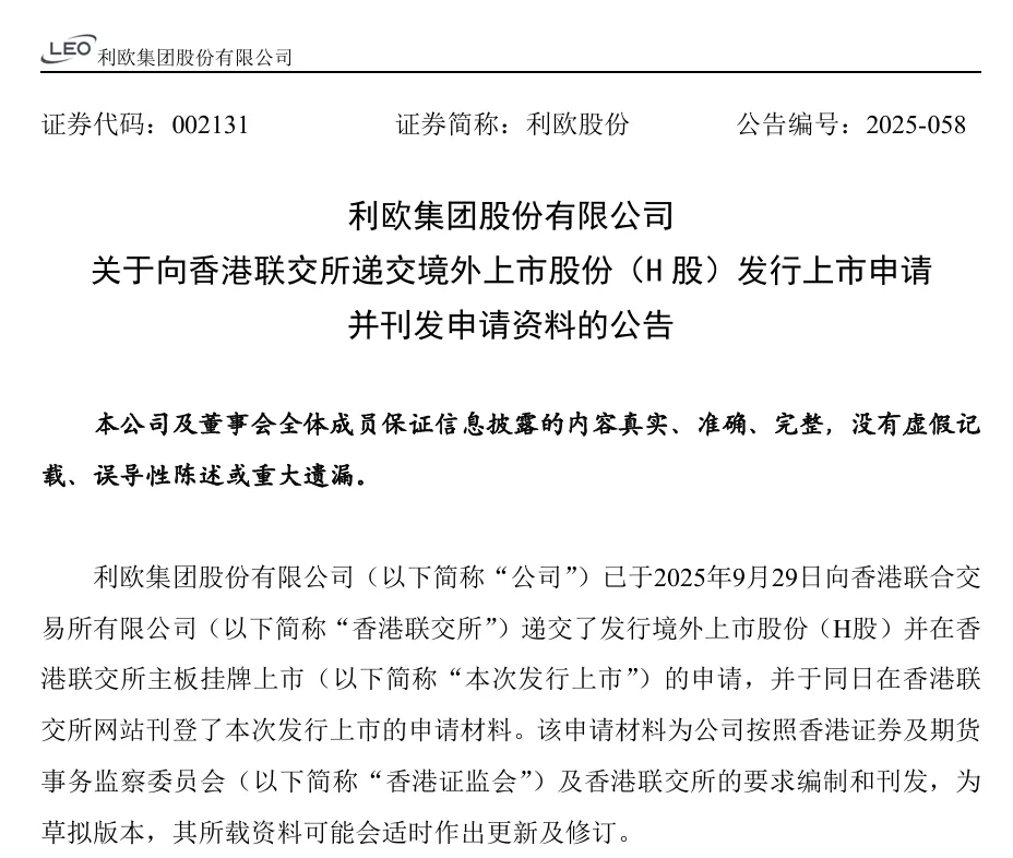 9月29日,以“AI驱动的数字营销和智慧泵与系统”为核心业务的深交所主板上市企业利欧集团股份有限公司(简称“利欧股份”)向港交所提交H股发行上市申请,拟加码AI算力基础设施等方面投资。
