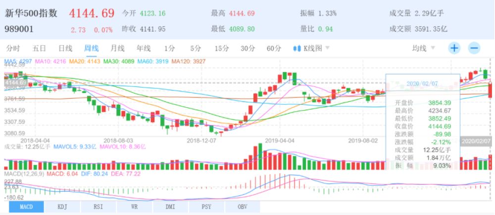 新华500指数(989001)周K线图
