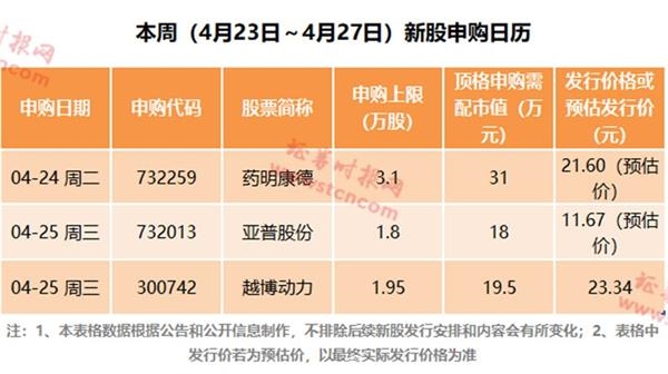 除药明康德外,明确于本周三申购的越博动力和亚普股份亮点也颇多。