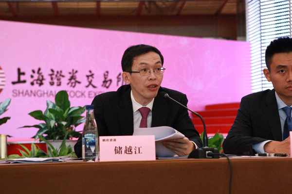 鹏欣资源副总经理、财务总监储越江对本次重大资产重组的必要性等进行说明 徐金忠 摄