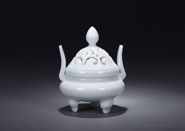 青白瓷三足镂雕笏板炉