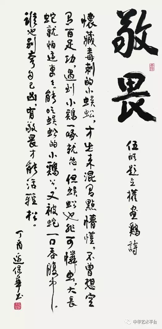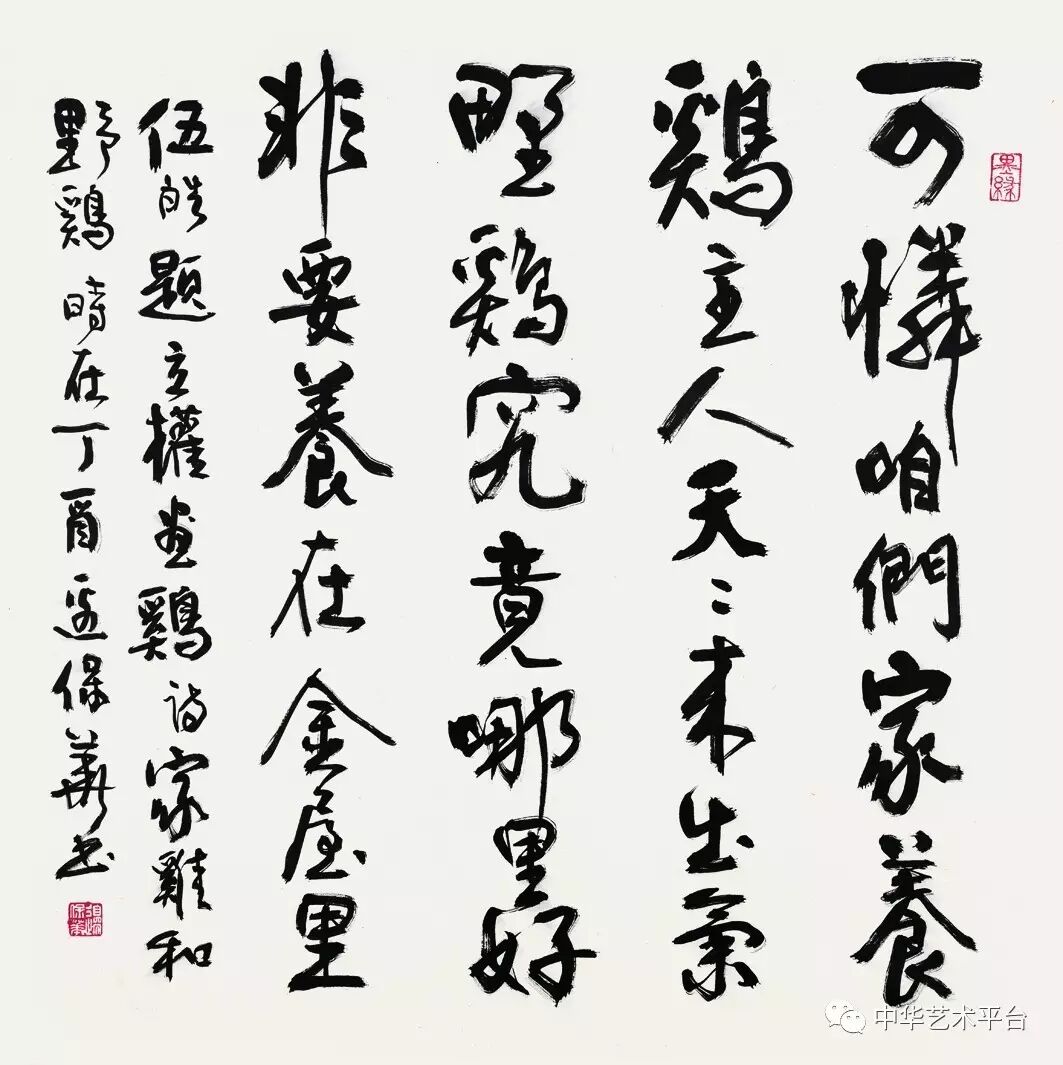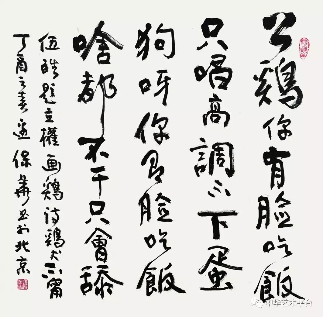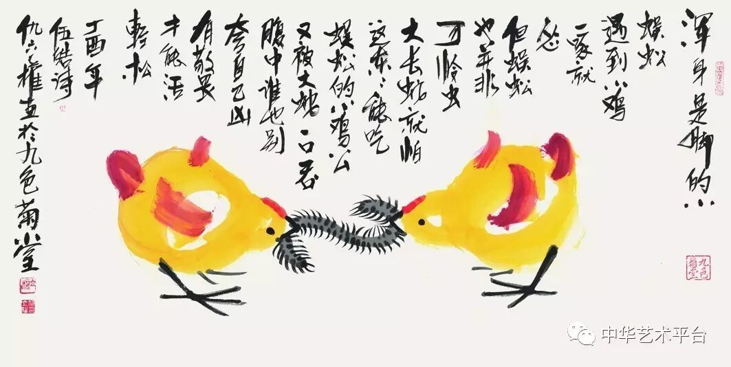 笔墨当随时代。2017年欣逢丁酉鸡年,鸡年亦为“吉”年,有吉庆祥和之美意。诗人伍皓、书法家边保华、画家仇立权以弘扬“鸡文化”、祝福“吉祥年”为出发点,汲取国学典故之精华,辅之于思想感情,佐之于人生感悟,以“鸡”为题材,用拟人化的手法联袂创作的70余幅书画作品,彰显大千世界形形色色“鸡”的精神风貌,有的昂扬向上,有的勤劳勇敢,有的拒绝诱惑…, 作者爱憎分明之情跃然纸上,观之令人赏心悦目!