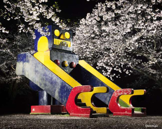 木藤富士夫在深夜去游乐场,借助闪光灯对这些游乐设施进行拍摄,独特的打灯方式使这些设施没有白天看上去那么可爱,反而透露着阴森诡异的神秘气息。