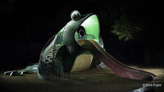 国际在线专稿:根据俄罗斯生活新闻网7月17日报道,日本艺术家木藤富士夫,是一位善于从不寻常的角度观察普通事物的摄影师。例如,在他看来,游乐场中那些有着动物形象的设施,并没有友好地邀请人们来玩耍,它们更像是藏在大人孩子的深层潜意识里的可怕怪兽。看着他拍出的游乐场照片,小朋友不会想去玩,反而会被吓跑。