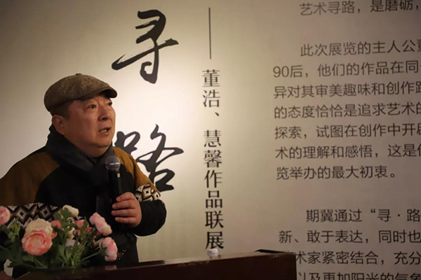 1月5日,“寻路”——董浩、慧馨艺术联展在新闻大厦艺术馆开幕。本次展览由北京商报《典藏周刊》和新闻大厦艺术馆联合主办,山和海艺术空间协办,石傲担纲策展人,呈现著名主持人、艺术家董浩与高徒慧馨两位艺术家四十余幅精品力作。