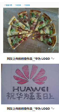 丰富的表现形式、丰厚的活动奖品,使该活动一经推出便广受好评。连续四周来,网友们积极参与互动、上传照片,该条微博活动累计转发25,400余次,共收集千余张网友作品。包含手机、路由器、上网卡、服务器等华为产品上的LOGO,还有不少拍摄花瓣等形似华为LOGO的照片,更有网友亲自动手创造了有关华为LOGO的“艺术品“。与其说这是一场华为终端的微博活动,更不如说这是华为在微博上的一场”另类“产品展。