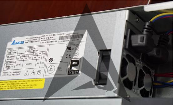 阿瓦隆三模组整机的供电部分由两台台达DPS-500YB专业服务器电源组成,DPS-500YB是台达服务器领域里非常成熟的产品,市场保有量很大,经历过长时间的市场考验,平均无故障时间达到了惊人的10万小时,充分保证了阿瓦隆矿机的长久稳定运行。