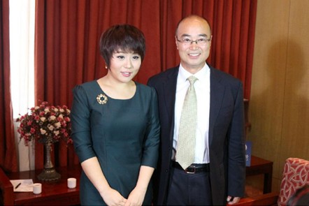 凤凰财经主持人权静与陈九霖合影