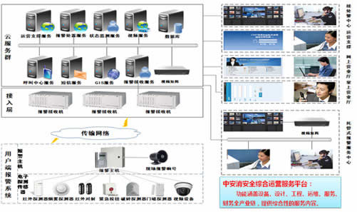 技术方面,中安消综安防合运营服务平台以云计算、物联网为基础设计,支持分布式部署;深度集成视频、GIS、GPS、呼叫中心等技术,提高业务处理的效率;借鉴大型电信运营商BOSS系统模型,与安防领域的自身特点相结合,打造适合安防领域的综合运营服务平台。