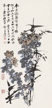 所谓:“半世画竹,一生画兰。”花卉中兰花最为难画,从这幅《兰石图》可见,处于艺术创作成熟期的吴昌硕于画兰一道已入妙境,当为屈指可数的画兰大家。而从已在市场上出现的吴昌硕画作可见,以兰花为主要描摹对象者却相对较少,加之此作取大幅横向构图,更显稀见珍贵,收藏价值不言而喻。此外,专场中另有缶翁作《紫藤》,同样以书入画,纵横恣肆,力透纸背,亦为画家之力作。