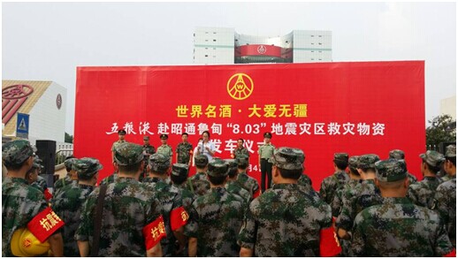 8月3日,云南省昭通市鲁甸县发生6.5级地震,震源深度12公里,灾情严重。五粮液公司决定用实际行动支援灾区。8月4日,五粮液紧急筹措首批价值400万元的救灾物资,运往鲁甸地震灾区。