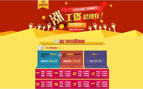 58同城招聘季活动再度来袭 百万红包加高薪职位掀双重高潮