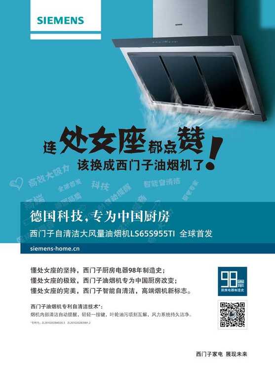 西门子油烟机表示,处女座的坚持、处女座的极致、处女座的完美,他们懂!