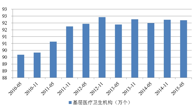 2010年至2015年基层医疗卫生机构数量情况