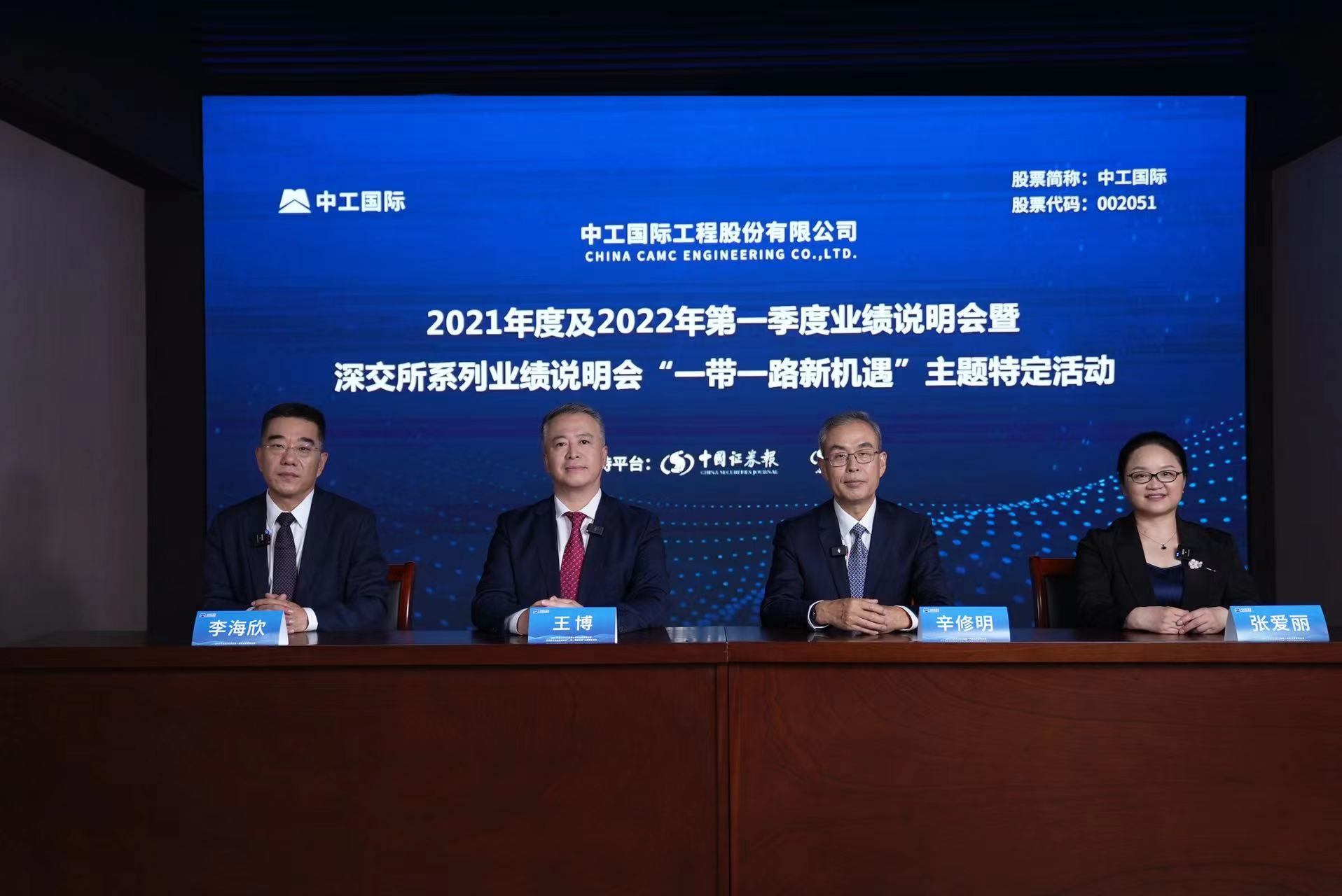 2022年5月30日下午,中工国际(002051)2021年度及2022年第一季度业绩说明会暨深交所系列业绩说明会“一带一路新机遇”主题特定活动在中国证券报中证路演中心成功举办。中工国际董事长王博先生、董事、总经理李海欣先生、独立董事辛修明先生以及财务总监、董事会秘书张爱丽女士参加了此次业绩说明会,并热情回答了投资者的提问。下面是精彩问答,与投资者分享。