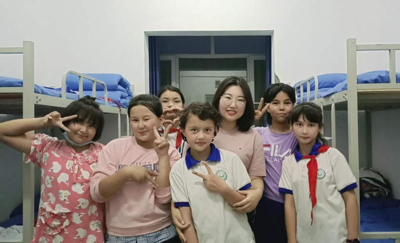 2021年9月,王雨婷以员工志愿者的身份参加了国信证券的支教行动,来到新疆麦盖提县为孩子们上课。登上讲台的第一天,她向学生们介绍自己的故乡烟台,下课后,学生们好奇地围住她,七嘴八舌地询问“烟台”在哪里。从这天开始,王雨婷心中有了一个小小愿望:要尽己所能,让这里的孩子看到外面的世界。