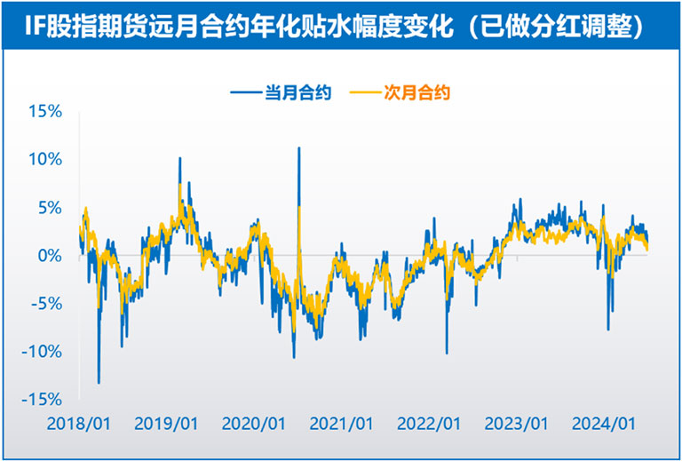 那么,什么是基差?通常将股指期货合约与指数现货点位之差称为基差。股指期货合约会随着交割日的临近向指数现货点位靠近,即基差会收敛于0,因而在构建空头套保对冲头寸时的基差率(基差除以指数现货点位)即为对冲成本(这里假设持有股指期货合约到期,实际投资过程中一般会提前展期,对冲成本略有差异)。如果构建空头套保对冲头寸时基差为负,即股指期货价格低于指数现货价格,呈贴水状态,贴水率为当期的对冲成本;如果构建空头套保对冲头寸时基差为正,即股指期货价格高于指数现货价格,呈升水状态,则该次对冲能带来升水率大小的正收益。