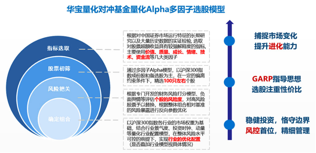 由此可知,这一量化Alpha多因子选股模型的核心要素包括价值、质量、成长、情绪、技术、资金流等因子选股体系、财务风险打分体系、量化行业配置模型等。华宝基金通过多个有效因子的组合降低波动;通过多维度考察,规避价值陷阱、成长陷阱,提高模型稳定性。在这一模型的运作过程中,华宝基金亦高度重视限制行业偏离、风格偏离和个股偏离,加强数据源质量控制,密切跟踪市场环境变化,持续评估和改进模型。