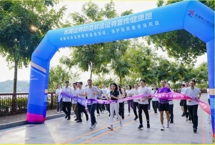 近日,东莞证券联合东莞市上市公司协会在东莞水濂湖公园正式启动“跑遍中国·2024年中国证券业防范非法证券宣传健康跑·东莞证券”活动。截至目前,东莞证券已经连续举办两届防范非法证券宣传健康跑公益宣传活动。该活动有效增强投资者风险防范意识和自我保护能力,对保护投资者合法权益、塑造健康的行业文化、优化资本市场发展环境和行业发展生态起到了积极作用,帮助投资者远离非法证券活动,为投资者保驾护航。