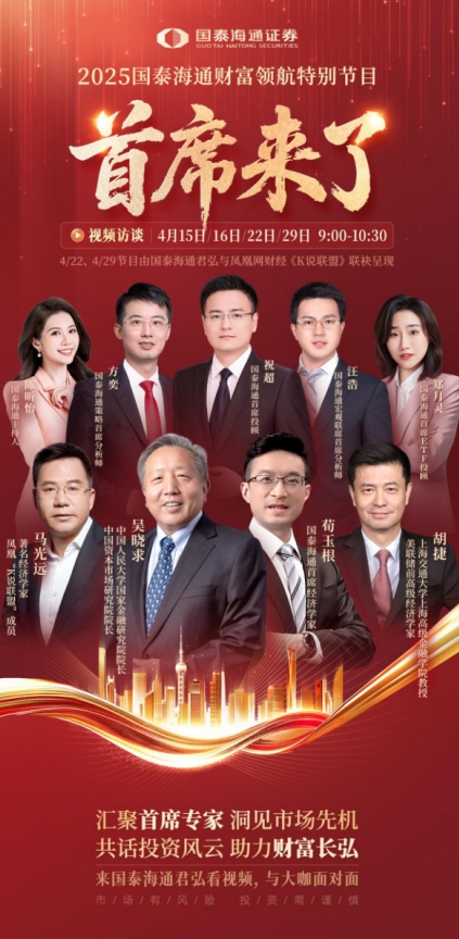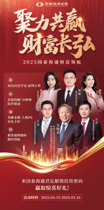 洞察投资机遇,助力财富长弘。2025国泰海通财富领航活动全新推出《首席来了》特别直播,著名经济学家吴晓求、国泰海通首席经济学家荀玉根、著名财经评论员马光远、前美联储高级经济学家胡捷等专业大咖坐镇直播间,与首席分析师、首席投顾强强联合,展望中国经济形势和资本市场前景,共话投资风云,助力财富长弘。专业铸就信任,全程护航投资。2025国泰海通财富领航活动打造《投顾在线》陪伴式解盘直播,发挥首席投顾专业优势,搭建在线交流窗口,陪伴客户投资理财需求升级。每个交易日9:00-15:30投顾在线解盘,解读投资策略和热门行业赛道走势,强化互动答疑,借助数字化客群经营的方式扩宽服务半径,依托贴合用户需求的高质量内容输出铸就客户信任。