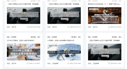 图1 《证券公司廉洁从业及文化建设专题》课程