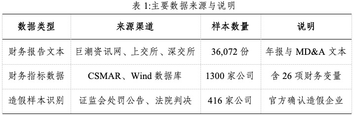 财务造假通常具有隐蔽性强、手段复杂和表象合理等特点,其线索多隐藏在财务报表附注、管理层讨论与分析(MD&A)及重大事项公告等文本中,同时也可能反映在财务指标的异常波动与盈余操纵行为中。有效整合并分析这些多源信息,是提升舞弊识别准确性的关键。