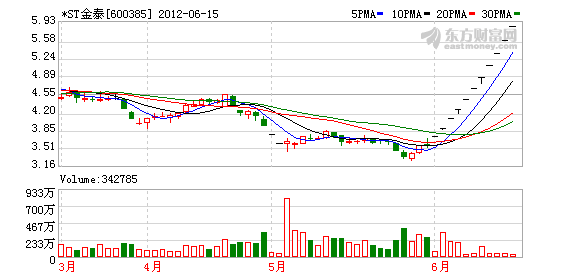 6月15日,*ST金泰开盘再次上演一字涨停,至此,该股已连续11个交易日封死涨停。