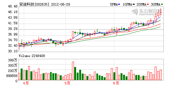 截至6月29日,共有25家机构对安洁科技的2012年度业绩作出预测,平均预测公司今年的净利润为1.56亿元,比去年同期增长54.39%。