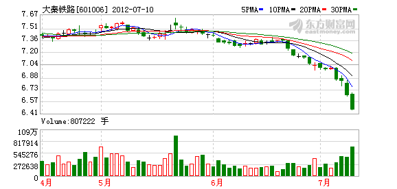 期间,大秦铁路(601006)从7.4元跌至6.4元,广深铁路(601333)从3.3元跌至2.97元。