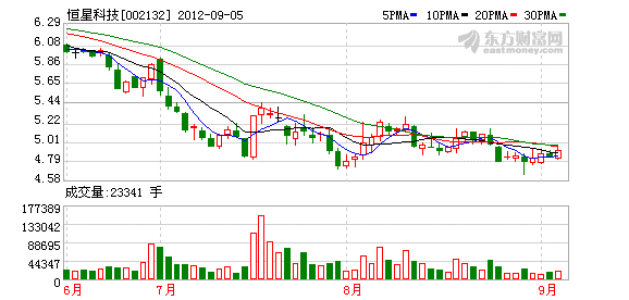 2012年中报显示,恒星科技营业收入9.22亿元,同比减少6.39%,营业利润-1909万元,同比减少119.59%,业绩表现急转直下,主要原因是公司光伏产业受到美国双反、欧债危机的影响,内部管理费用和财务费用的攀升影响,超精细钢丝盈利能力下降。