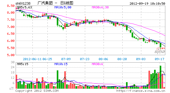 但大股东的增持并不像股票回购一样,给资本市场带来信心,广汽集团股价进入下行通道,在9月14日公布增持结果后,17日,公司股价再次下跌6.11%,收于5.53元,而昨日公司股价依然下跌了0.72%,报收于5.49元。