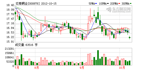 10月11日,云南铜业股价收于16.59元,动态市盈率43.7倍。
